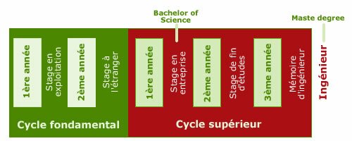 The program is organized according to the Anglo-Saxon model: Bachelor + Master's degrees. The Bachelor Diploma of Sciences is delivered at the end of the third year. The Engineering Diploma, delivered by the end of the five year, qualifies students for a Master's degree. |
