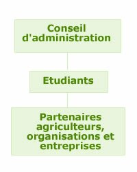 The board of directors is the decisionary organ of the Organization which runs the school. Our partners: firms, professional organisations and farmers, are the basis and target of our actions (be they tutoring or research, service or consultancy performance contracts). The entire organization aspires to efficiency, flexibility and responsibility, mirroring in this way the foundations of our Educational policy.